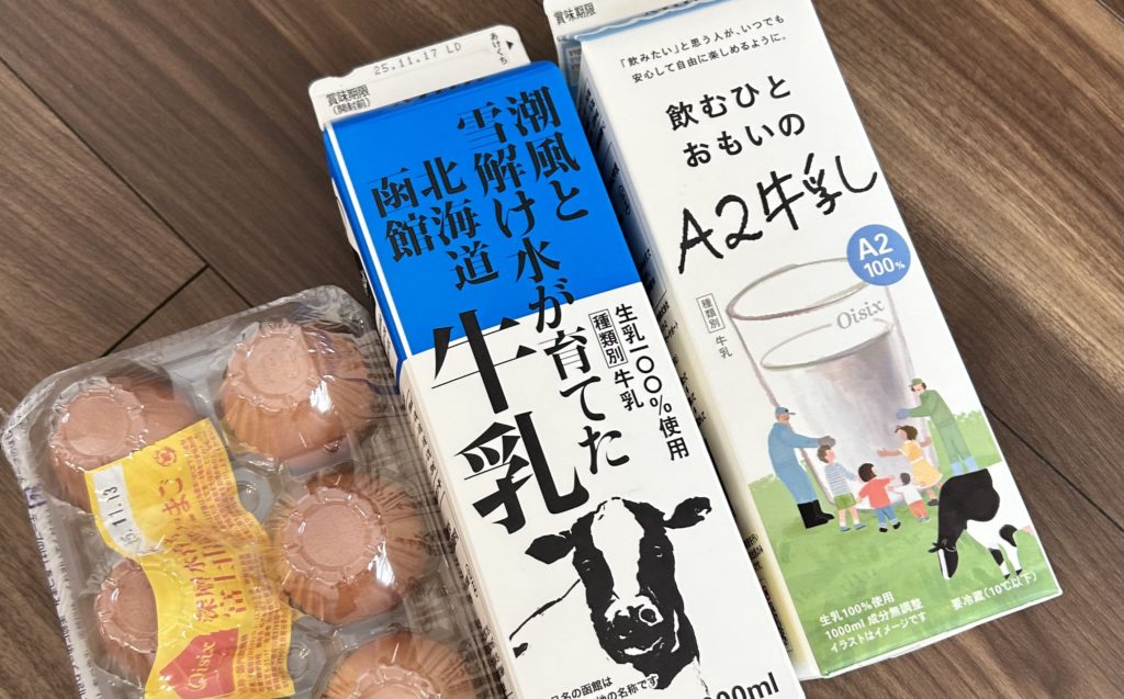 我が家の近所のスーパーでは、牛乳は250円くらい、卵は10個で280円くらいです。
