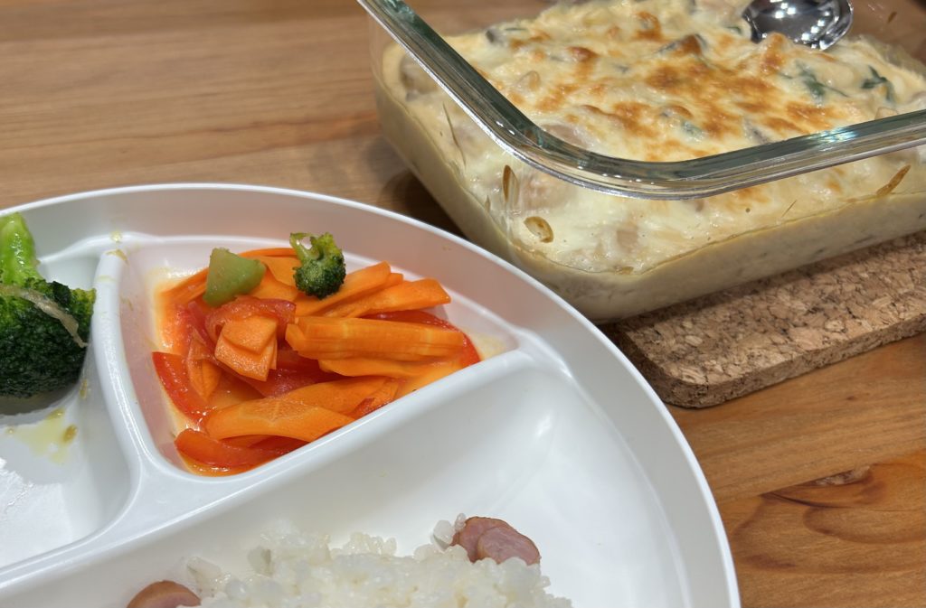 大人は美味しかったですが、いくらちゃんには微妙だったようです。でも、ちょっとマヨネーズをかけたら食べてくれました。