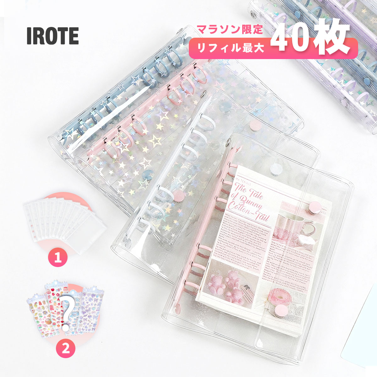 ・リフィルの他に下敷き2枚・チャック付きポケット2枚付き
